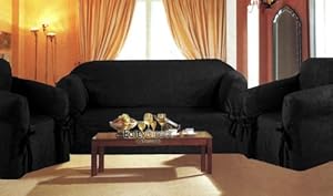 3 Pieces Solid Black Suede Corduroy Couch/sofa Cover+loveseat+chair Slipcover