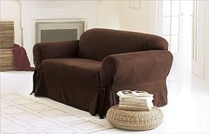 3 Pieces Solid Chocolate Brown Suede Couch/sofa Cover with Loveseat and Chair Slipcover